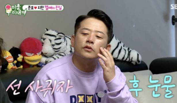 김준호는 최근 SBS '신발 벗고 돌싱포맨'에 출연해서 김지민과 오래 알고 지내다 보니까 점점 여자로 보였다고 밝혔습니다. 김지민이 여자로 보이기 시작하자 김지민이 좋아하는 건 다 했다고 하는데요. 김준호는 "여자가 싫어하는 건 하지 말라지 않나. 사귀기 전에 연초도 거의 끊었고 옷도 사기 시작했다. 캠핑 좋아하니까 캠핑도 갔다. 그리고 안검하수도 할 예정이다."라고 말했습니다.