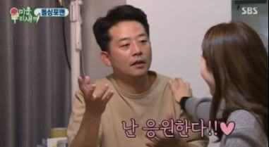 김지민은 최근 진행된 '내 집의 변신-하우스 대역전' 촬영현장에서 김준호와 사귄다며 재차 열애를 인정하는 모습을 보이기도 했습니다. 같이 촬영을 하고 있던 전진이 준호형 얼굴빛이 너무 달라졌다며 축하인사를 건넨 것으로 알려졌으며 김성주가 한 남자를 살렸다 김지민 높이 평가한다고 농담하자 김지민은 김준호에게 "고마워해라"라는 말을 남기며 웃음을 주기도 했다고 합니다.